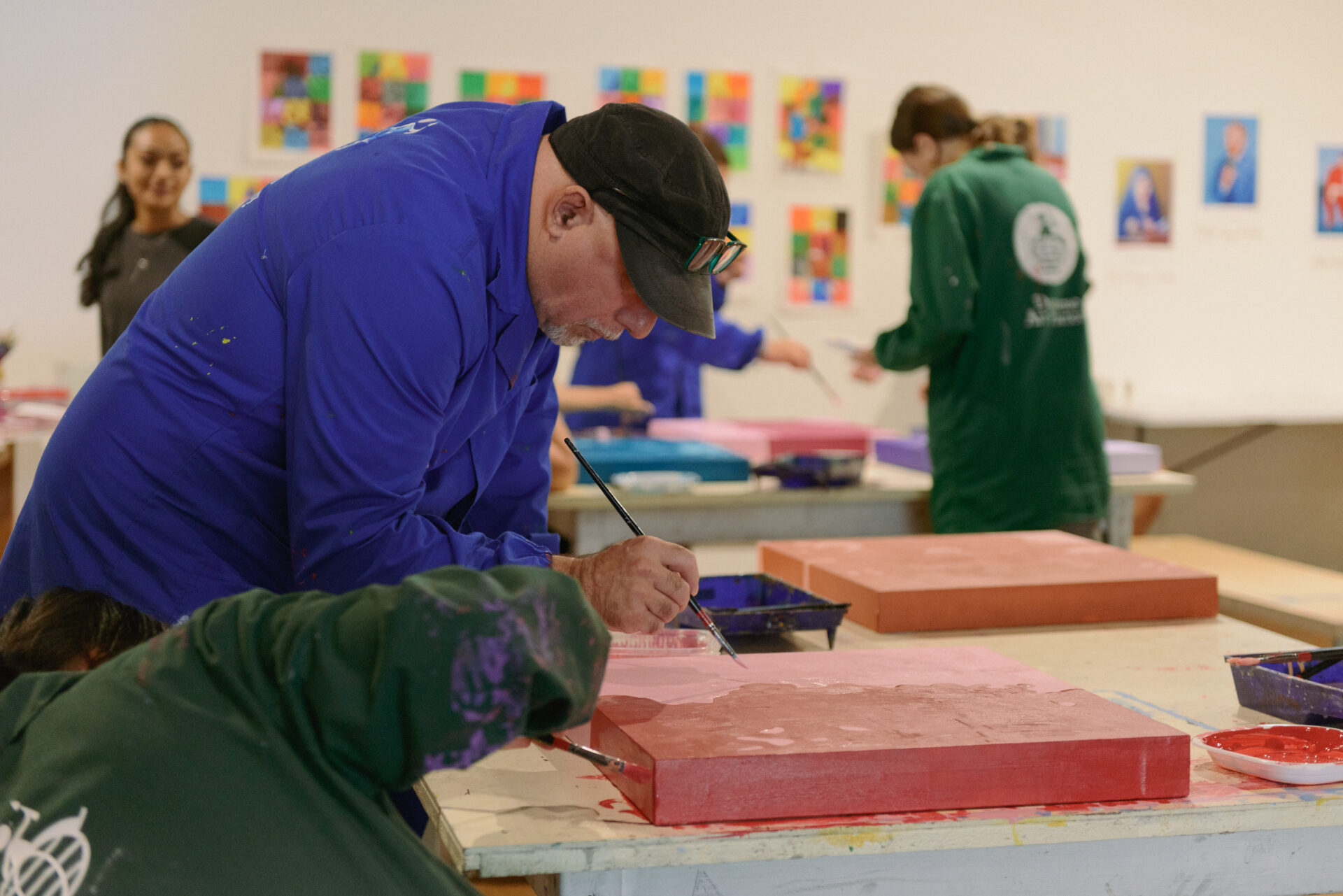 Dopo il 2012, Giuseppe Veneziano torna in Art Factory per condividere nuovamente la propria pratica pittorica, caratterizzata da uno stile neo-pop distintivo. Nel corso del workshop, è stata realizzata una grande tela composita ispirata al maestoso tiglio che l’artista osservava ogni mattina dalla finestra della sua prima stanza a Dynamo Camp.