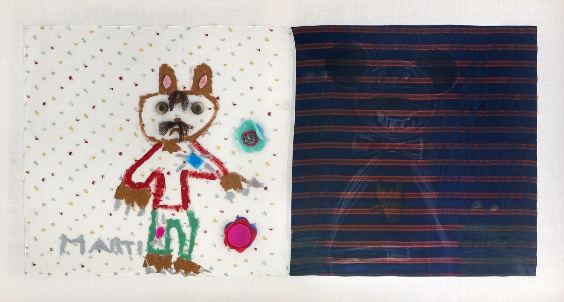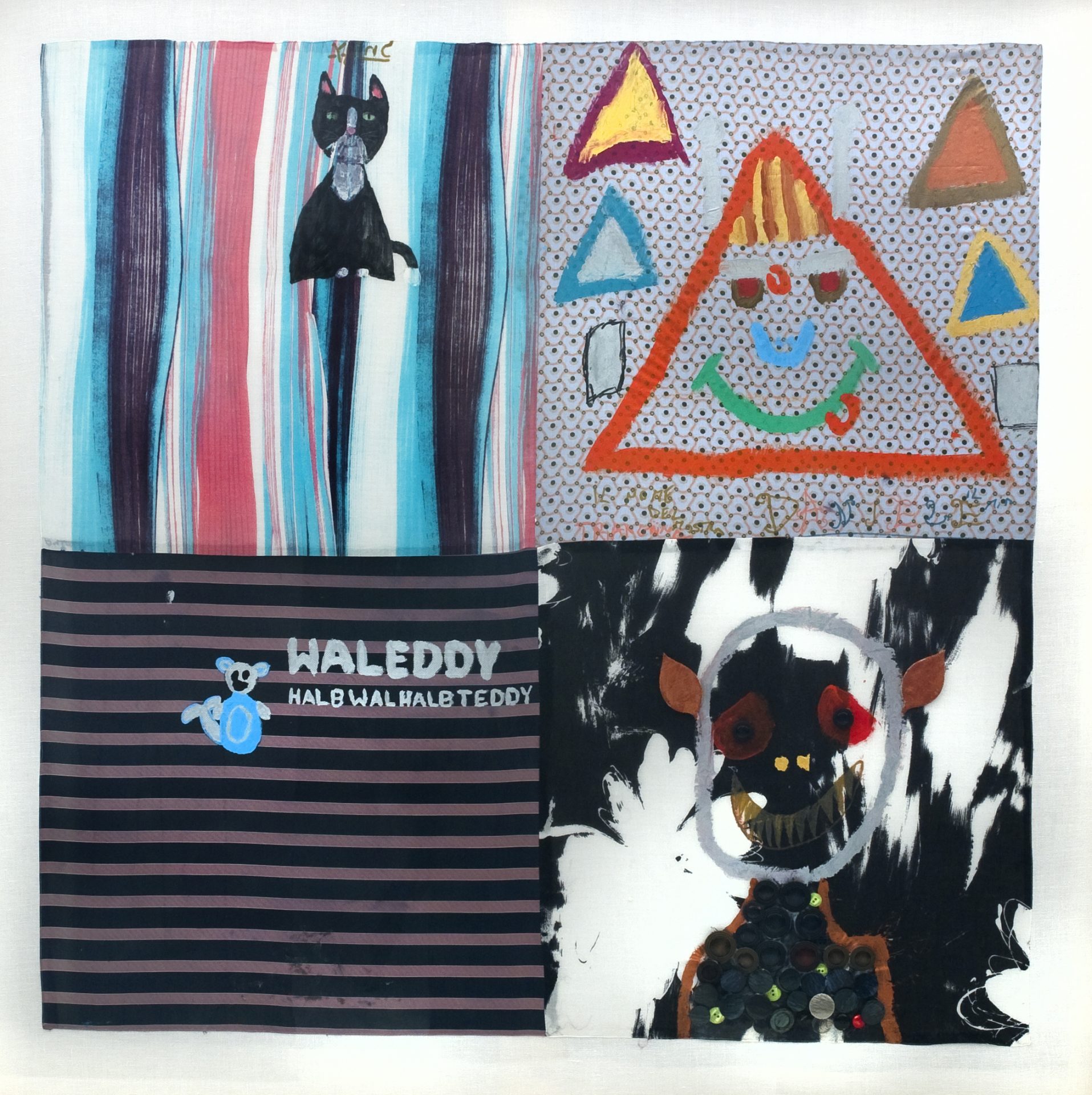 Accostare tessuti e lavorare con il collage appassiona bambini e adulti, per questo il lavoro di Antonio Riello conquista con gusto. Sono spontanei e raffinati gli arazzi colorati che i bambini compongono dipingendo liberamente dal loro cuore. “In un momento nel quale tutto appare inesorabilmente votato al “virtuale”, e anche i rapporti umani sembrano ormai possibili solo sui cosiddetti “social-network”, la solida esistenza di DynamoCamp testimonia (per fortuna !!) la tenace, ruspante e virtuosa persistenza di una realtà che è anche verità”